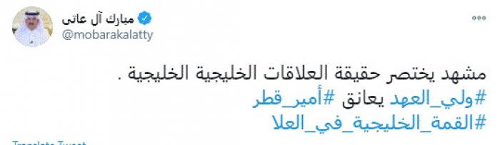 آل عاتي: مشهد عناق ولي العهد السعودي لتميم يختصر العلاقات الخليجية