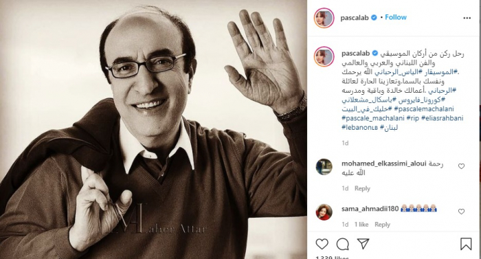 ونشرت باسكال صورة الرحباني، عبر حسابها الرسمي بموقع "إنستجرام"، وعلقت: "رحل ركن من أركان الموسيقي والفن اللبناني والعربي والعالمي، الموسيقار إلياس الرحباني، الله يرحمك نفسك بالسما، وتعازينا الحارة لعائلة الرحباني، أعمالك خالدة وباقية ومدرسة".