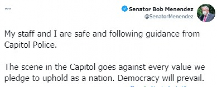 استنكر السيناتور الأمريكي بوب مينديز، رئيس لجنة العلاقات الخارجية بالكونجرس، أعمال العنف من جانب مؤيدي الرئيس دونالد ترامب.