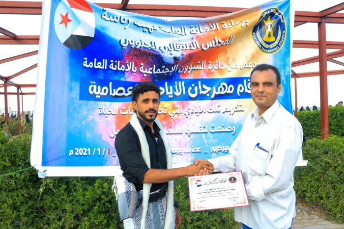 كرمت دائرة الشؤون الاجتماعية بالأمانة العامة للمجلس الانتقالي الجنوبي، عصر اليوم الجمعة، 32 مشاركًا بمهرجان (الأيادي العصامية) من أصحاب المشاريع الشخصية الصغيرة بالعاصمة عدن.