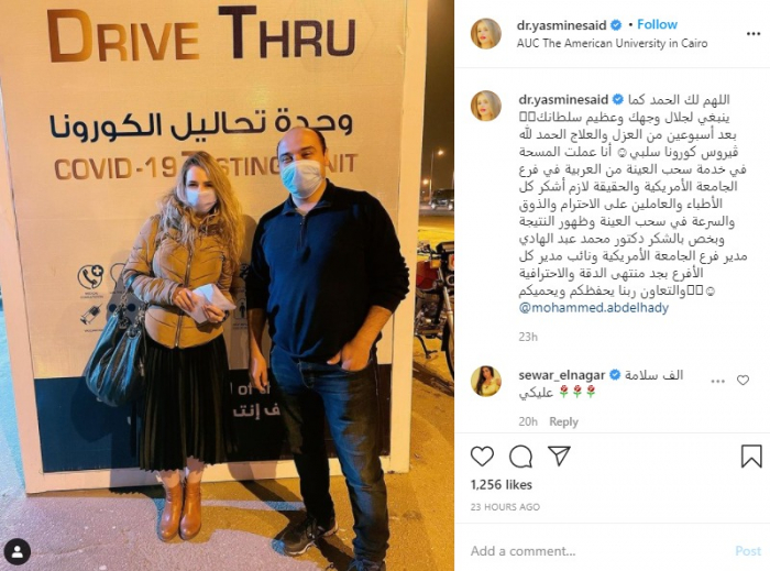 أضافت: "أنا عملت المسحة في خدمة سحب العينة من العربية في فرع الجامعة الأمريكية، والحقيقة لازم أشكر كل الأطباء والعاملين على الاحترام والذوق والسرعة في سحب العينة وظهور النتيجة، بجد منتهى الدقة والاحترافية والتعاون، ربنا يحفظكم ويحميكم".