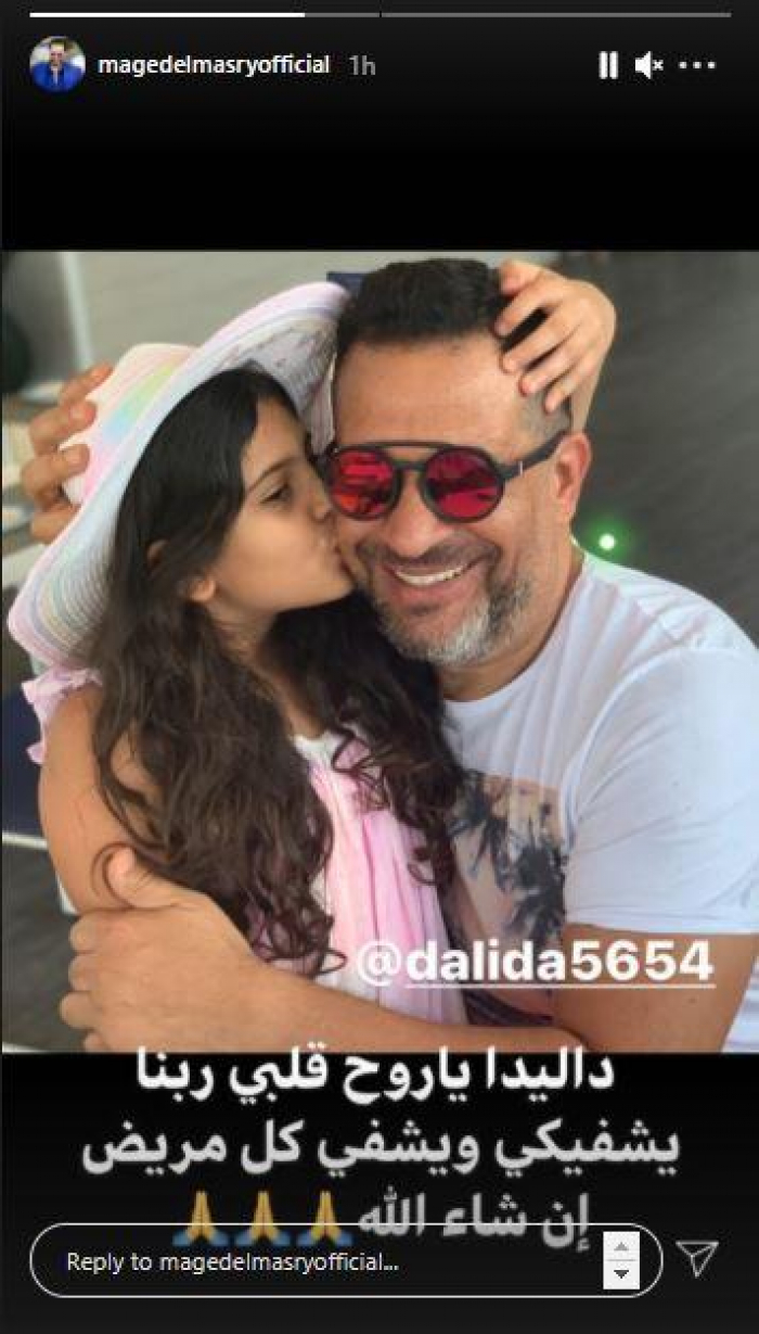 ونشر المصري، صورة تجمعه بابنته عبر "ستوري" حسابه على موقع "إنستجرام"، وعلّق: "داليدا يا روح قلبي.. ربنا يشفيكي ويشفي كل مريض إن شاء الله".