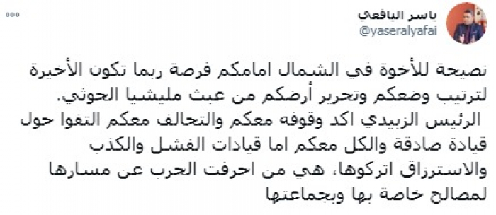 اليافعي للشماليين: اغتنموا فرصتكم الأخيرة