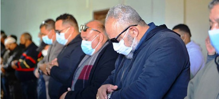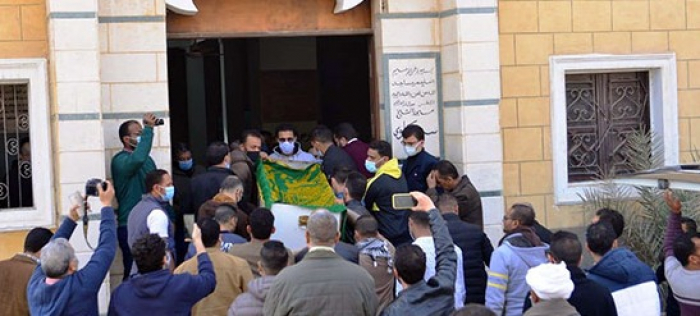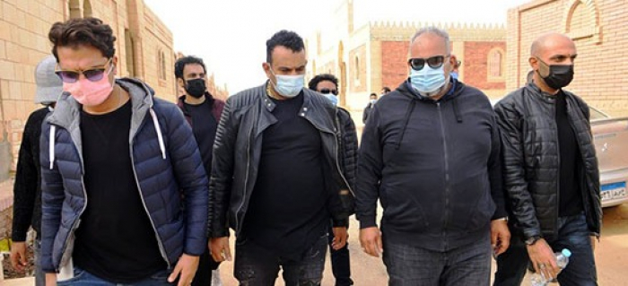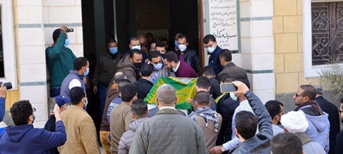 بيومي فؤاد بالكمامة في جنازة والده (صور)