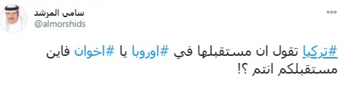 وقال في تغريدة عبر "تويتر" رصدها "المشهد العربي": "تركيا تقول أن مستقبلها في أوروبا يا إخوان فأين مستقبلكم أنتم".