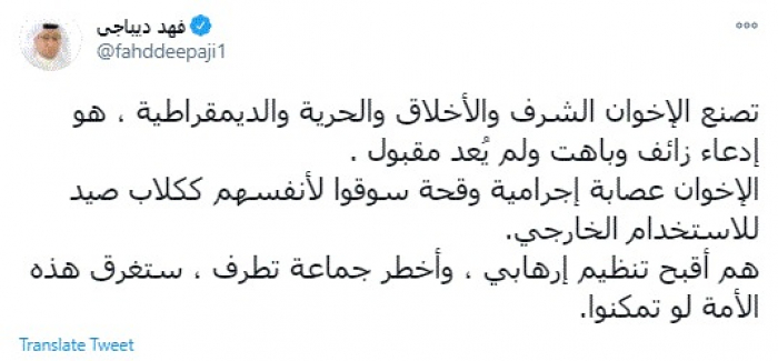 شن المحلل السياسي السعودي فهد ديباجي، اليوم، هجومًا حادًا على جماعة الإخوان، واصفًا إياها بالعصابة الإجرامية الوقحة.