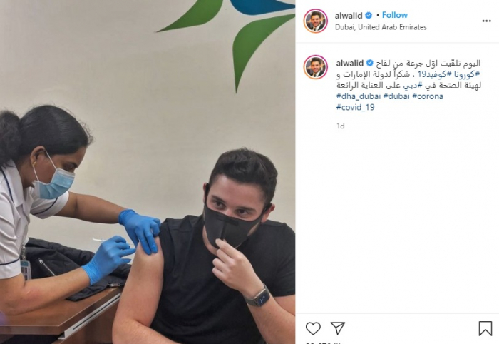 ونشر الحلاني، صورة له أثناء تلقيه اللقاح، عبر حسابه الرسمي بموقع إنستجرام، وعلق: "اليوم.. تلقّيت أوّل جرعة من لقاح كورونا كوفيد 19، شكراً لدولة الإمارات ولهيئة الصّحة في دبي على العناية الرائعة".