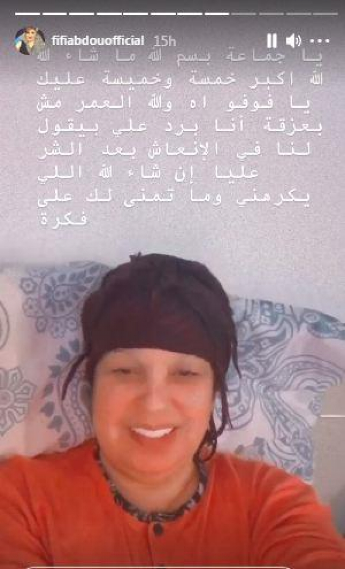وعبر حسابها بـ"انستجرام" نشرت "فيفي" صورة لها وعلّقت قائلةً: "يا جماعة بسم الله ما شاء الله خمسة وخميسة عليك يا فوفو، أه والله العمر مش بعزقة، أنا برد على اللي بيقول أنا في الانعاش بعد الشر عليّا، إنشالله اللي يكرهني".
