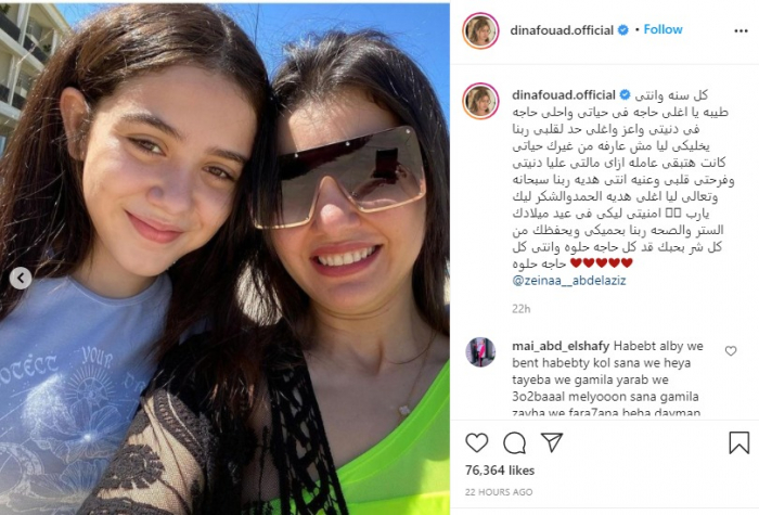 هنأت الفنانة دينا فؤاد، ابنتها زينة، بعيد ميلادها، ونشرت صور تجمعهما عبر حسابها الرسمي بموقع إنستجرام.
