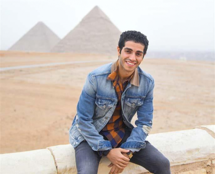 حرص الفنان العالمي مينا مسعود، على زيارة منطقة الأهرام بالجيزة، ضمن الجولة السياحية له في مصر.