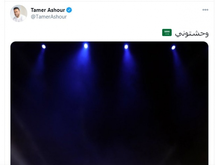 ونشر "عاشور"، عبر حسابه بـ"تويتر"، صورة من حفل سابق له بالمملكة وعلق: "وحشتوني".