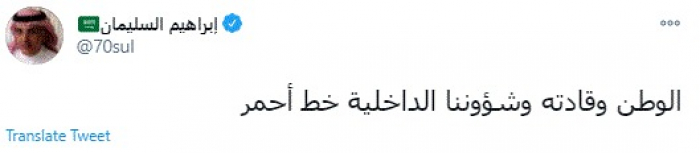 وقال في تغريدة عبر "تويتر" رصدها "المشهد العربي": "الوطن وقادته وشؤوننا الداخلية خط أحمر".