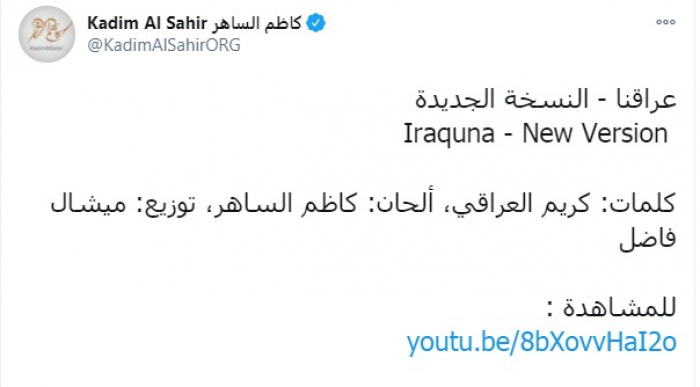 طرح الفنان كاظم الساهر، النسخة الجديدة لأغنية "عراقنا" عبر قناته على "يوتيوب".