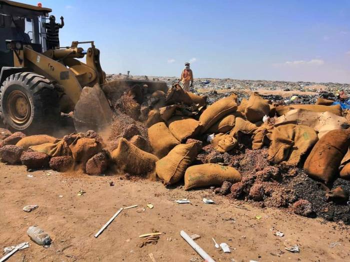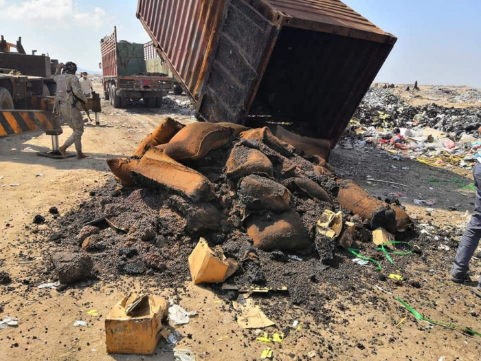 إتلاف 8 أطنان فول سوداني منتهي الصلاحية بعدن (صور)