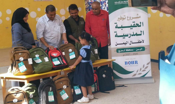 وزع مركز الملك سلمان للإغاثة، اليوم الأحد، 122 حقيبة مدرسية على طلاب روضة الشروق بالحوطة في محافظة لحج.