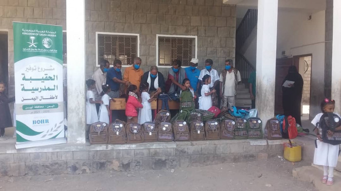 سلمت فرق مركز الملك سلمان للإغاثة حقائب مدرسية لطلاب مدرسة خالد الشحي في مدينة شقرة الساحلية، بمحافظة أبين.