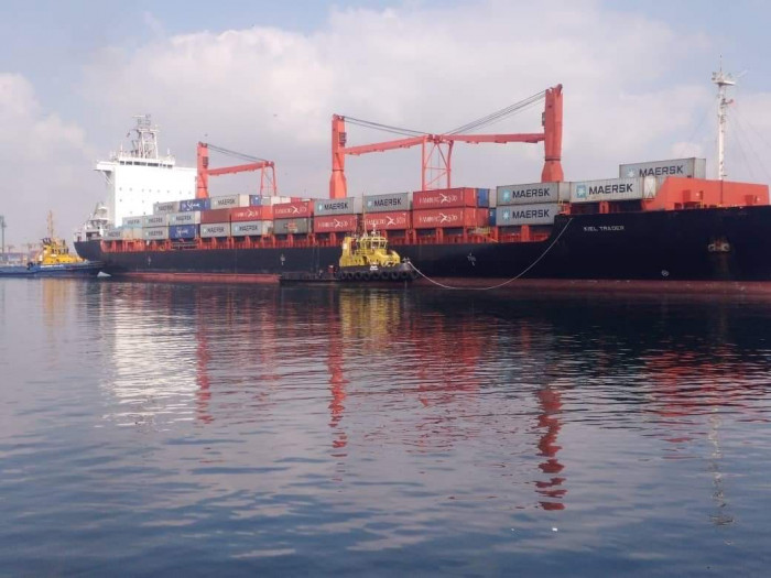 رست سفينة الحاويات (كيل تريدر)، صباح اليوم الاثنين، بميناء المعلا، في العاصمة عدن.