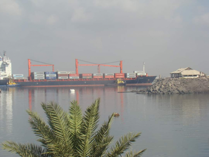 ودخلت السفينة إلى رصيف الميناء لتفريغ 958 حاوية، بالتزامن مع افتتاح الميناء بعد توقف لسنوات.