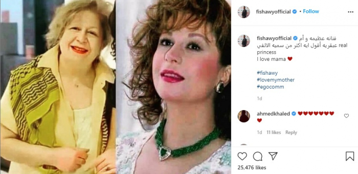 نشر الفنان أحمد الفيشاوي صورة مجمعه في إطار واحد لوالدته الفنانة سمية الألفي، عبر حسابه الرسمي بموقع "إنستجرام".