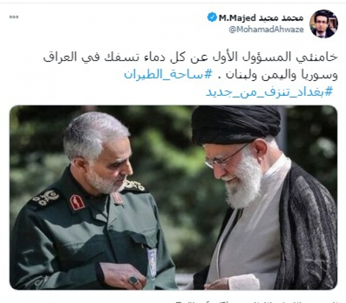 وقال في تغريدة على حسابه بموقع التدوين المصغر تويتر، اليوم إن: "خامنئي المسؤول الأول عن كل دماء تسفك في العراق وسوريا واليمن ولبنان".