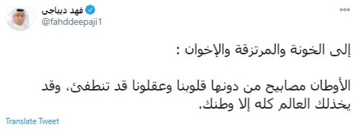 وجه المحلل السياسي السعودي فهد ديباجي، اليوم، رسالة نارية لجماعة الإخوان والمرتزقة.