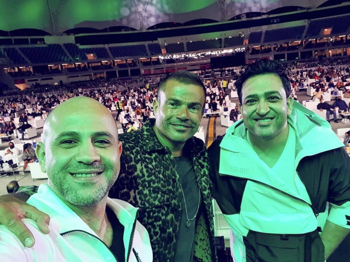 عزيز الشافعي وتامر حسين بصحبة عمرو دياب بحفله في دبي (صورة)