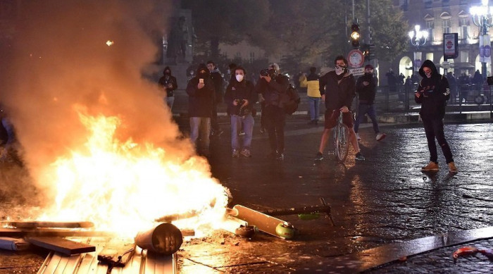 واشتعلت الاضطرابات في اليوم الثاني من فرض قيود جديدة أكثر صرامة للتصدي لفيروس كورونا المستجد شملت حظر تجول خلال الليل، مما أدى إلى وقوع مظاهرات.