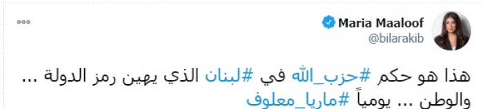 أدانت الإعلامية اللبنانية ماريا معلوف، اليوم، واقعة اعتداء مواطن لبناني على رجل شرطي في لبنان، مؤكدةً أن إهانة رمز الدولة سببها حكم حزب الله للبلاد.