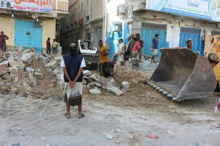 واصل مكتب الأشغال في مدينة المكلا، بساحل حضرموت، اليوم الاثنين، حملة إزالات بمنطقة ديس المكلا.