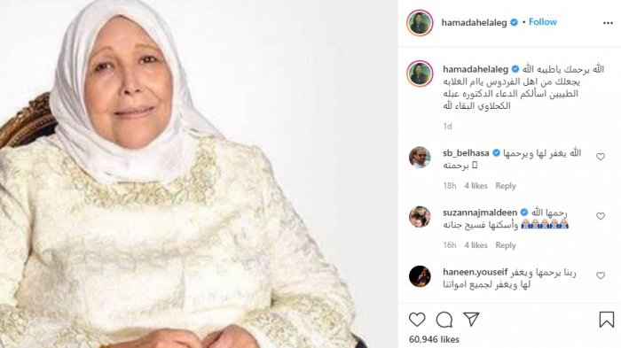 وكتب هلال، عبر حسابه على "إنستجرام": "الله يرحمك يا طيبة.. الله يجعلك من أهل الفردوس يا أم الغلابة الطيبين.. أسألكم الدعاء للدكتورة عبلة الكحلاوي.. البقاء لله".