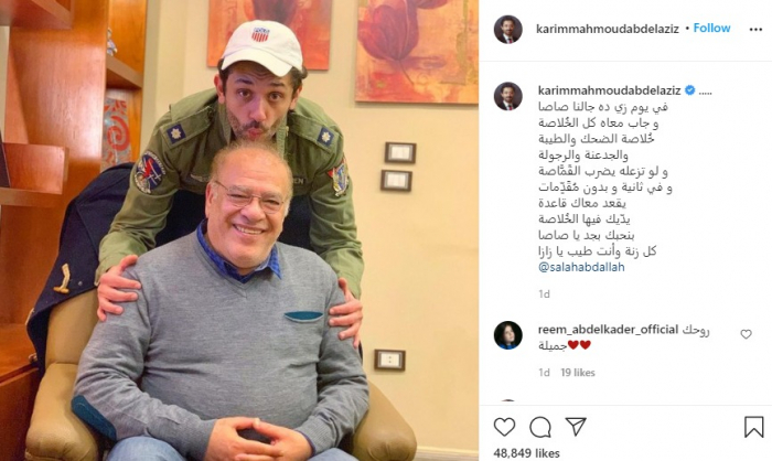 حرص الفنان كريم محمود عبدالعزيز، على تهنئة الفنان القدير صلاح عبد الله، بعيد ميلاده .