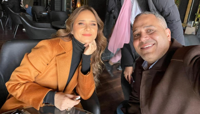 مصطفى درويش بصحبة نيللي كريم في كواليس ضد الكسر