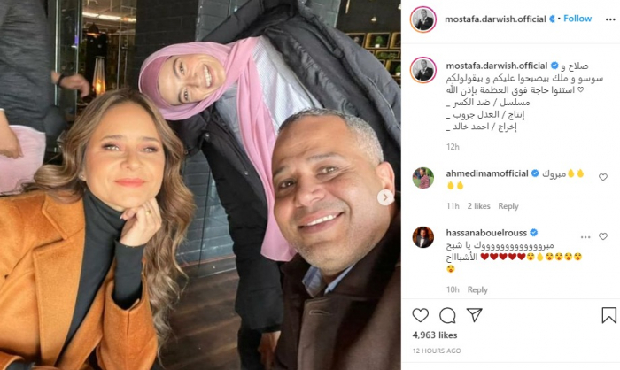 مصطفى نشر الصورة، وكتب :"أول صورة من أول مشهد لينا، صلاح وسوسو، ورمضان بإذن الله يجمعنا، إخراج أحمد خالد، تأليف عمرو الدالي، نوعدكم بحاجة عظمة العظمة بأذن الله"