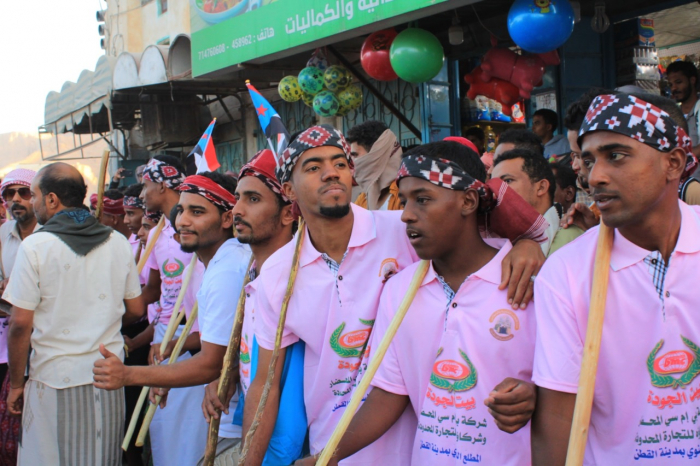 تزينت بأعلام الجنوب.. القطن تستقبل فرق الألعاب الشعبية