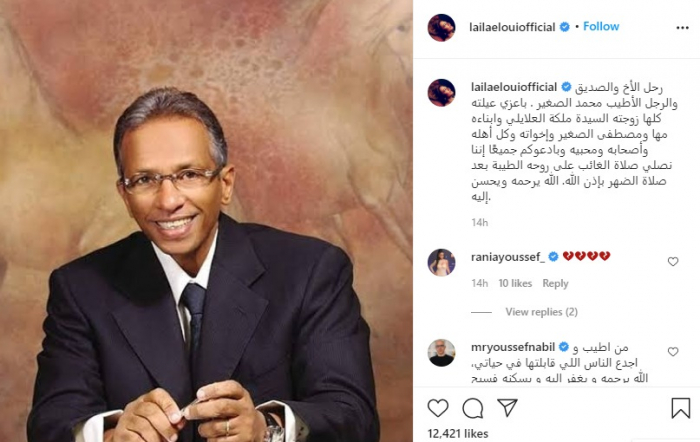 ونشرت ليلى صورة للراحل، معلقة "الأخ والصديق والرجل الأطيب محمد الصغير . أعزي عيلته كلها زوجته السيدة ملكة العلايلي وابناءه مها ومصطفى الصغير وإخواته وكل أهله وأصحابه ومحبيه".