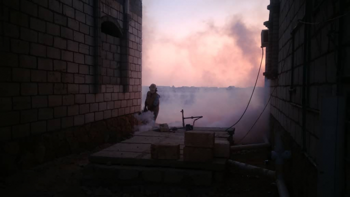 وتهدف الحملة إلى مكافحة البعوض الناقل للحميات المنتشرة، عبر رش مادة الجير على المستنقعات في الأحياء، وتحديدًا منطقتي الأنصار والمنصورة.