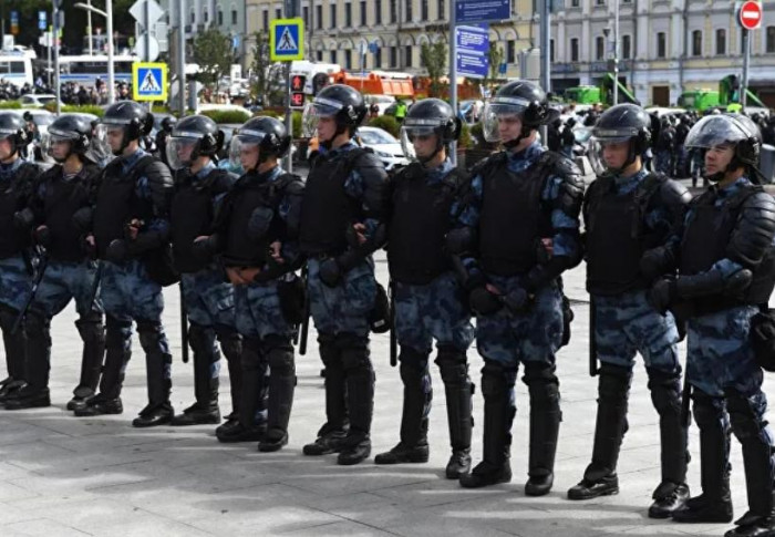 وفرضت الشرطة، سياجا لمنع المتظاهرين من الوصول إلى مكان اجتماع مقرر، يعقد بالقرب من المركز الرئيسي لجهاز الأمن الإتحادي الروسي "إف.إس.بي".