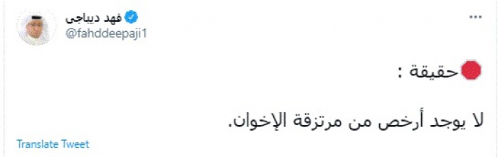 وقال في تغريدة عبر "تويتر" رصدها "المشهد العربي": "حقيقة: لا يوجد أرخص من مرتزقة الإخوان".