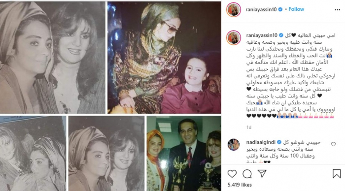 ونشرت رانيا صورة مجمعه في إطار واحد لوالدتها، عبر حسابها الرسمي بموقع "إنستجرام"، وعلقت :" أمي حبيتي الغالية كل سنة وانت طيبة وبخير وصحة وعافية ويبارك فيكي ويحفظك ويخليكي لينا يارب".