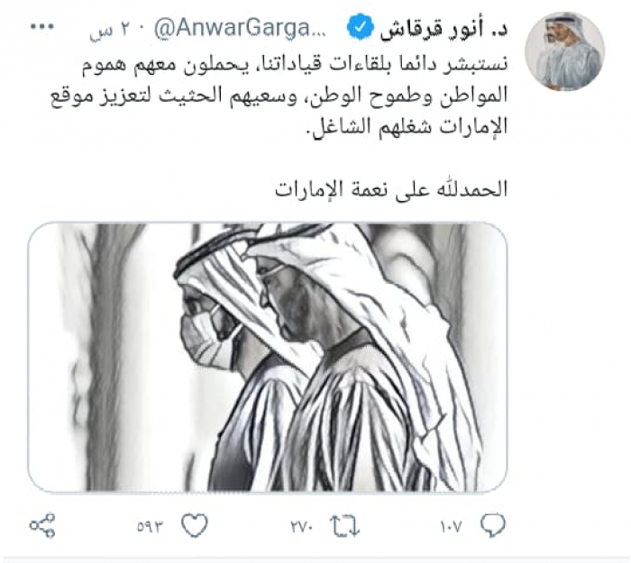 واختتم تغريدته بقوله: "الحمد لله على نعمة الإمارات".