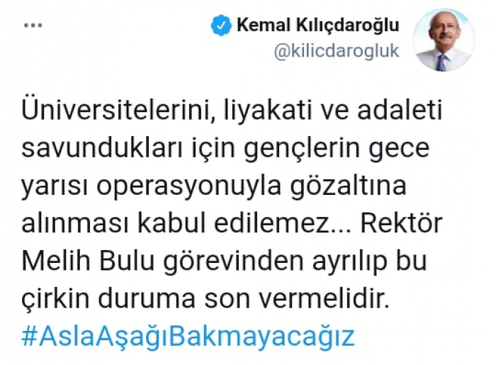 ندد رئيس حزب الشعب التركي المعارض كمال كليجيدار أوغلو بحملة الاعتقالات بصفوف جامعة بوغازيجي التي يشنها الرئيس رجب طيب أردوغان.