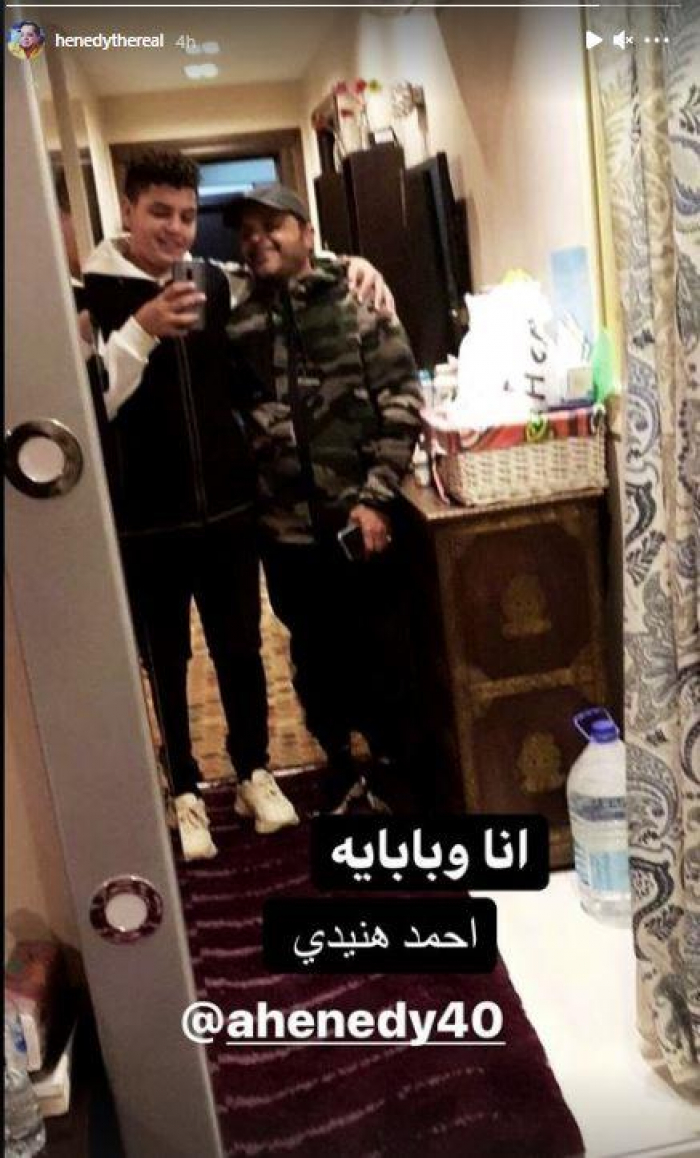 ونشر هنيدي، صورته مع نجله، عبر ستوري حسابه على إنستجرام، وحملت الصورة تعليقًا من نجله: "أنا وبابايا.. أحمد هنيدي".