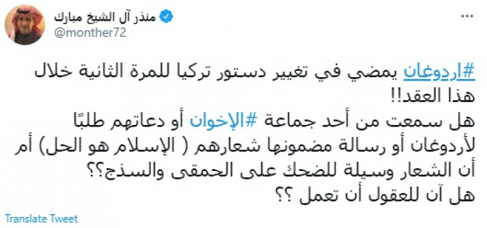 منذر آل الشيخ يُوجه تساؤلاً للإخوان بعد عبث أردوغان بالدستور التركي