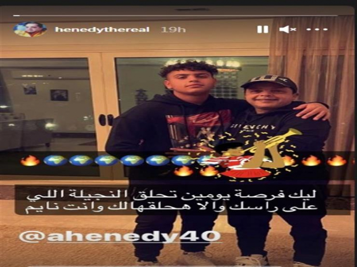 مازح الفنان محمد هنيدي نجله أحمد، ونشر صورة تجمعهما، عبر خاصية "القصص القصيرة"، عبر حسابه الرسمي بموقع "إنستجرام".