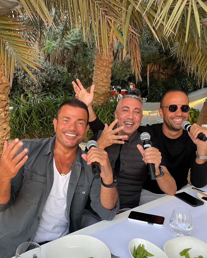 عمرو دياب يغني مع أصدقائه في دبي