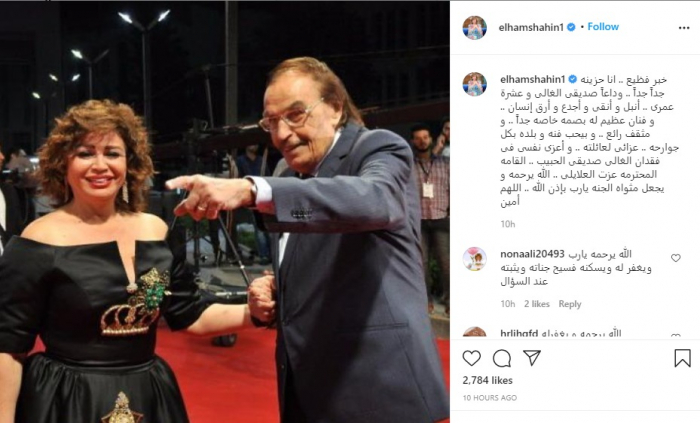 نعت الفنانة إلهام شاهين، الفنان الكبير عزت العلايلي، الذي وافته المنية صباح الجمعة، عن عمر ناهز الـ 86 عاما.