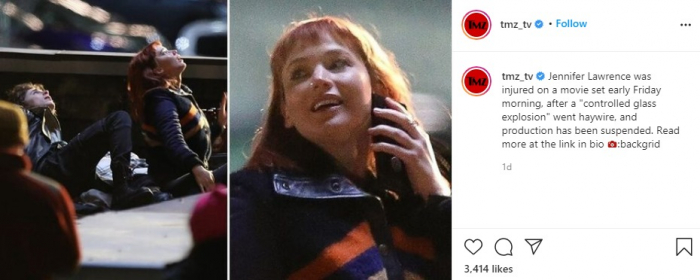 وأشار موقع "TMZ" وصحيفة "بوسطن غلوب"إلى أن الزجاج الذي تطاير من جراء انفجار محكوم خلال تصوير مشهدها أصاب لورانس بجرح ونزيف بالقرب من عينيها، حسبما أعلن برنامج "Et" بالعربي.