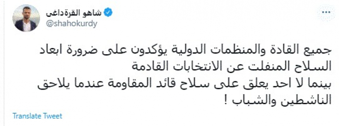 استنكر الكاتب الصحفي العراقي شاهو القرةداغي، اليوم، الصمت على ملاحقة المليشيات للناشطين والشباب في العراق.