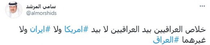 وكتب في تغريدة عبر "تويتر" رصدها "المشهد العربي": "خلاص العراقيين بيد العراقيين لا بيد أمريكا ولا إيران ولا غيرهما العراق".