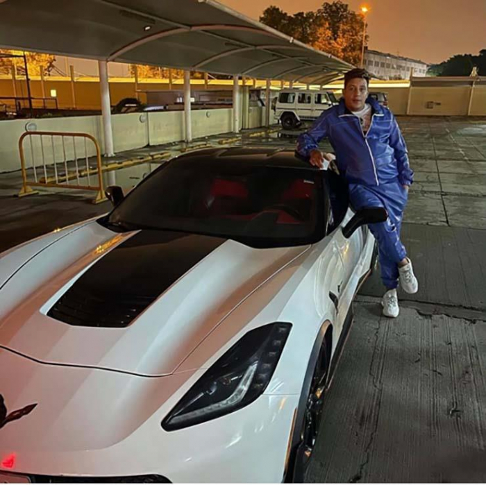 شارك مطرب المهرجانات حمو بيكا، جمهوره ومتابعيه، صورة مع سيارة فارهة من ماركة شيفرولية كورفيت C7.